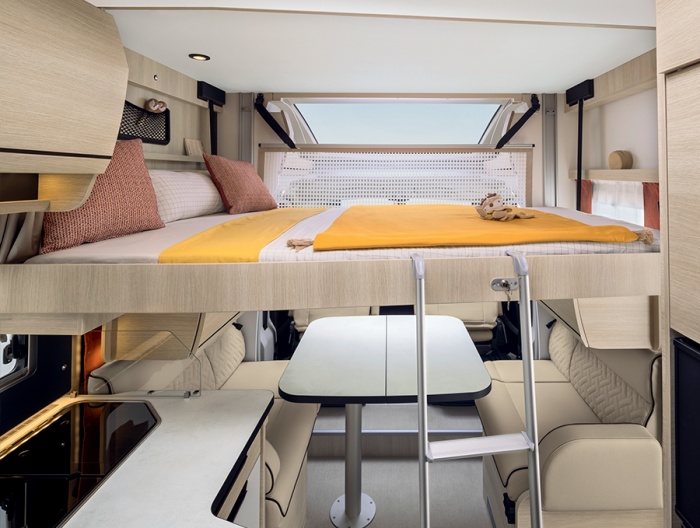 Envie de configurer votre Série 6F comme vous le souhaitez ? Disponible en option, optez pour un lit plafond électrique 2 places. Celui-ci est installé de série sur le modèle 606F. Au final, vous pourrez profiter de 4 couchages dans votre véhicule.