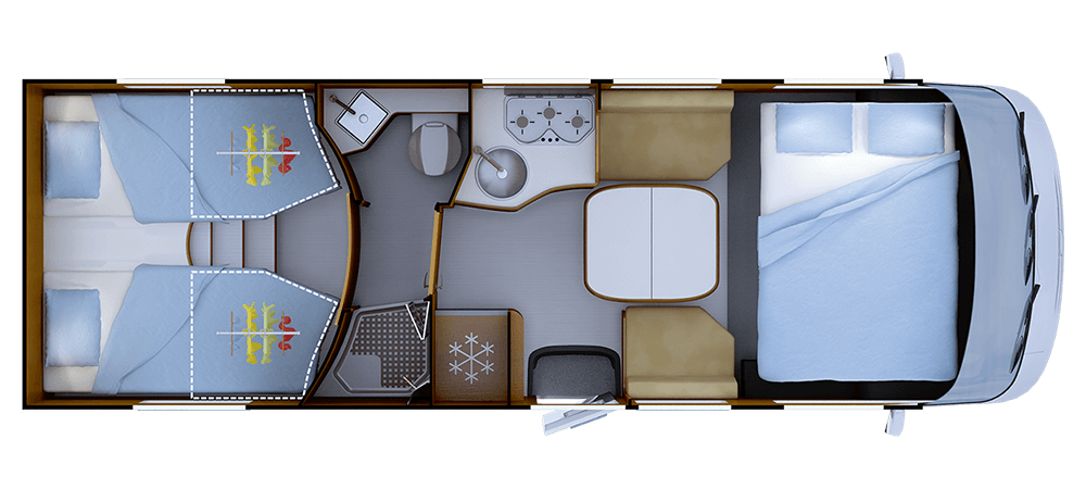 * 2 Avec option sans lit cabine **Places ceintures, pour nombre places carte grise voir guide technique. ***Truma Combi 6 CP PLUS